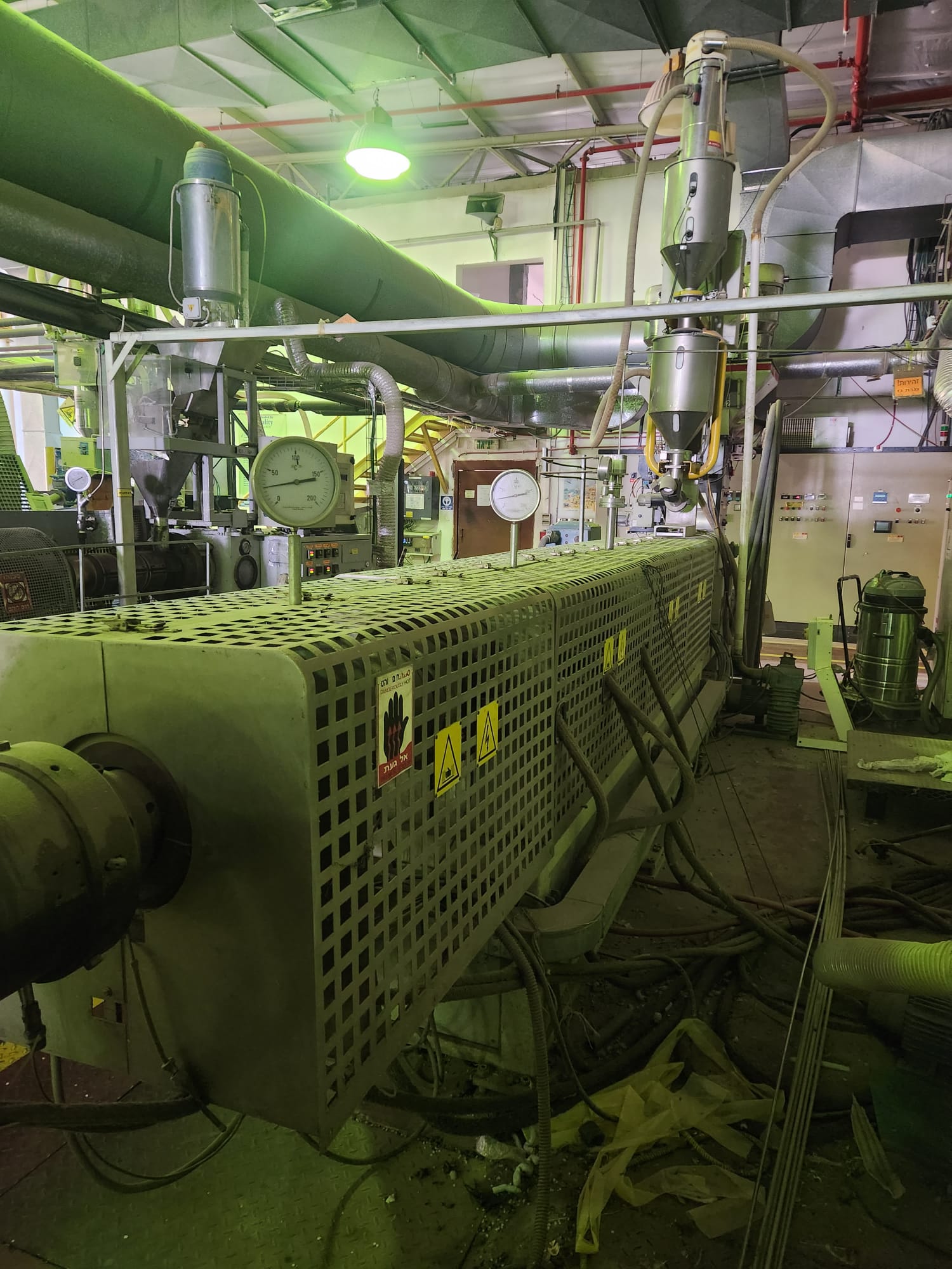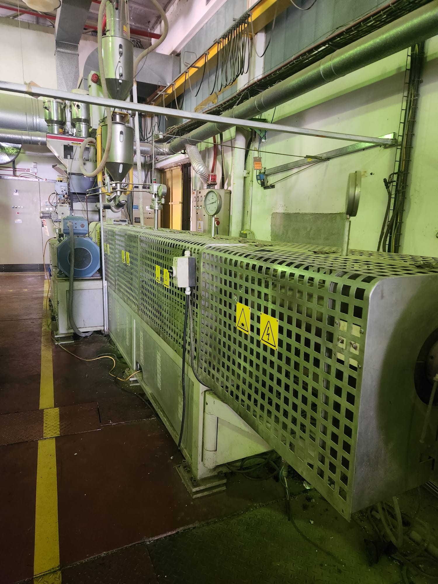 Datos generales: Marca: Erre-Effe-Ti (Italia) Tipo: Línea de extrusión de espuma EPE/XPS Tornillos: 135 mm Extras: Unidad de tracción, bobinadora de rollos grandes de hasta 2 m de diámetro Horas de funcionamiento: Solo 3650 (sin operar en los últimos 15 años) Año: 2004